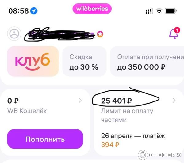 Переходим в профиль аккаунта и проверяем доступный лимит под оплачу частями.